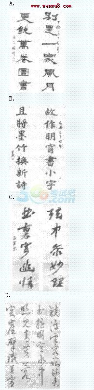 【答案解析】王羲之的《蘭亭序》是行書。A項(xiàng)是隸書;B項(xiàng)是楷書;C項(xiàng)是行書;D項(xiàng)是草書。因此本題選C。