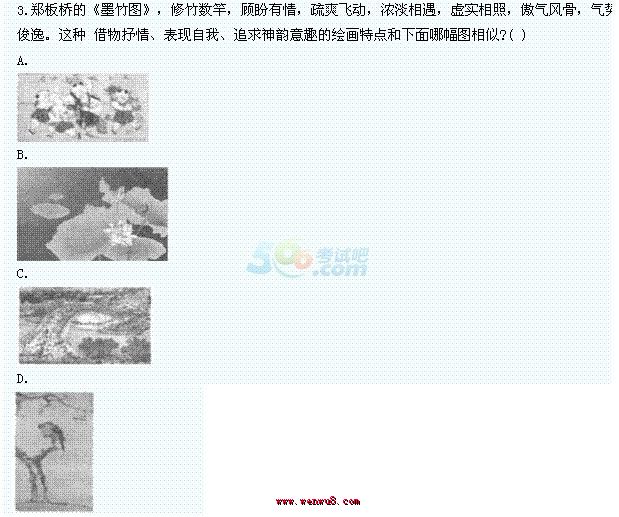 【答案解析】鄭板橋的《墨竹圖》追求的是一種淡雅疏浚的風(fēng)格,只有D項(xiàng)與之相似。因此本題選D! 4.第一次工業(yè)革命最先開始于()。