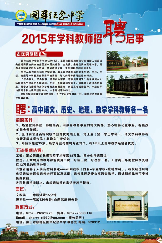 2015年廣東省佛山市順德區(qū)國(guó)華紀(jì)念中學(xué)教師招聘簡(jiǎn)章