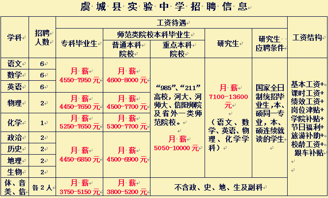 2、應(yīng)聘虞城縣實驗中學(xué)的請到實驗中學(xué)四樓會議室;
