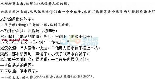 竟沒人再喊。一百多人很快排成隊,依次從老漢身邊奔上木橋。