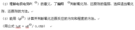 (1)掌握氧化還原反應有關的基本概念和氧化數法、離子-電子法配平氧化還原反應式。