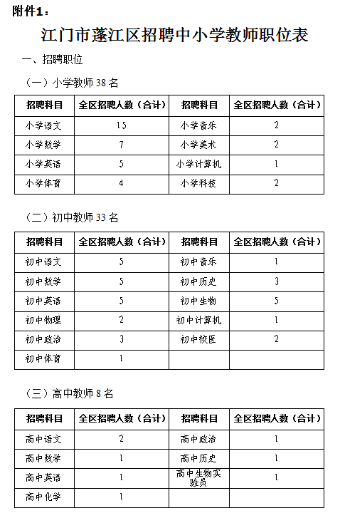 附件1:江門市蓬江區(qū)招聘中小學(xué)教師職位表.rar