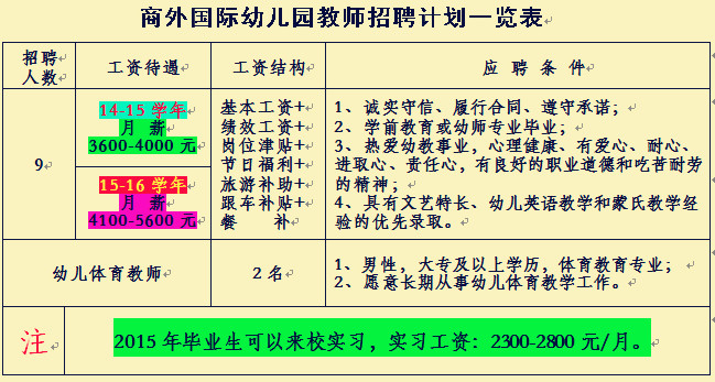 三、幼兒教師招聘計劃、工資待遇及應(yīng)聘條件