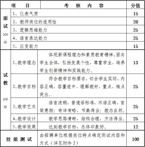 2、考核根據(jù)崗位性質(zhì)由面試、試教,或面試、試教、技能測試,或面試和技能測試組成。