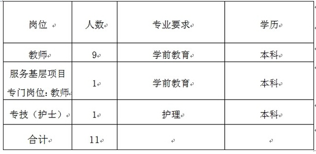 根據(jù)《2015年省教育廳直屬高校及廳直屬單位人員招錄招聘計劃的通知》(晉教人[2015]8號)文件精神,計劃招收10名幼兒教師、1名護士。