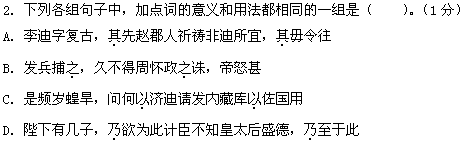3.下列句子中,都能表現(xiàn)李迪“膽量非凡”的一組是( )。(2分)