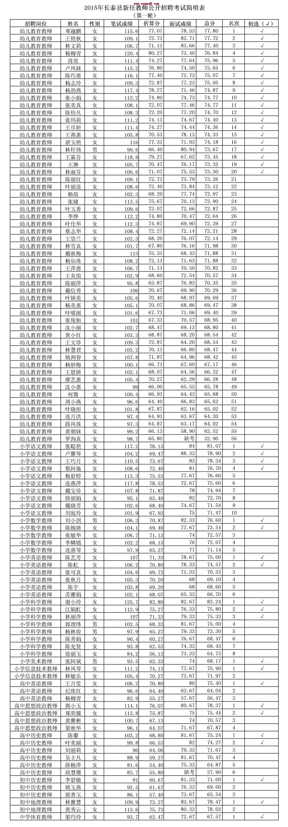 2015年福建省漳州市長(zhǎng)泰縣教師招聘考試簡(jiǎn)明表