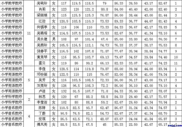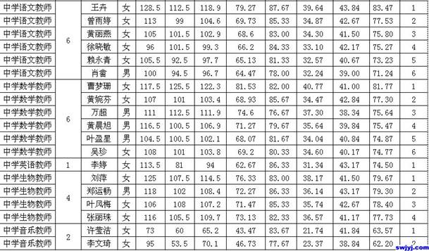 現(xiàn)將2015年邵武市公開招聘新任教師入圍體檢人員名單予以公示。