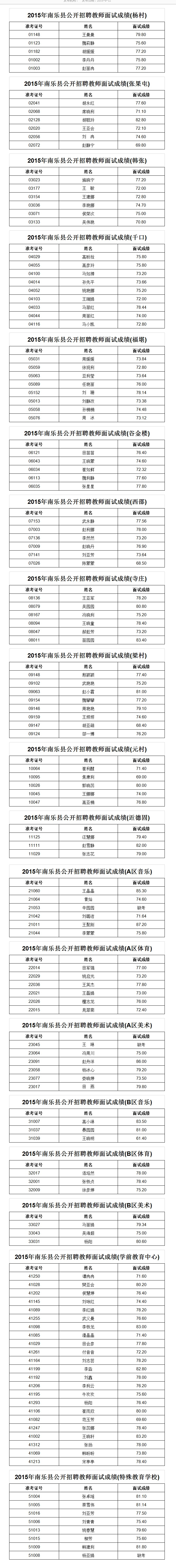 2015年河南省濮陽市南樂縣教師招聘面試成績