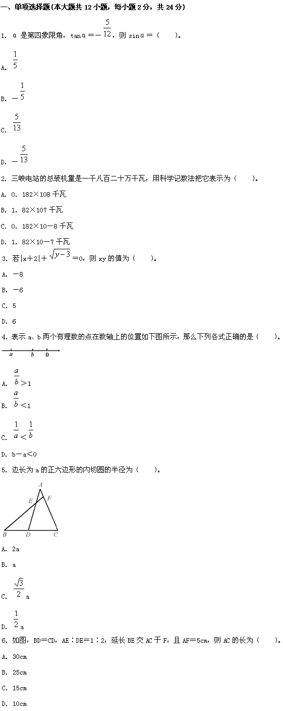 2009年河南省某市特崗教師招聘考試小學(xué)數(shù)學(xué)試卷