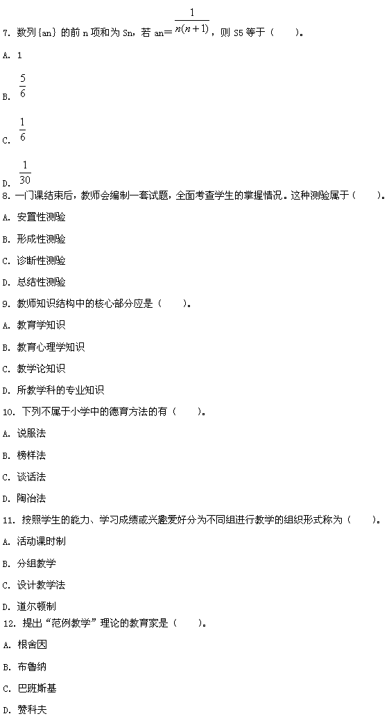 特崗教師招聘考試小學(xué)教育理論真題匯編試卷(一)