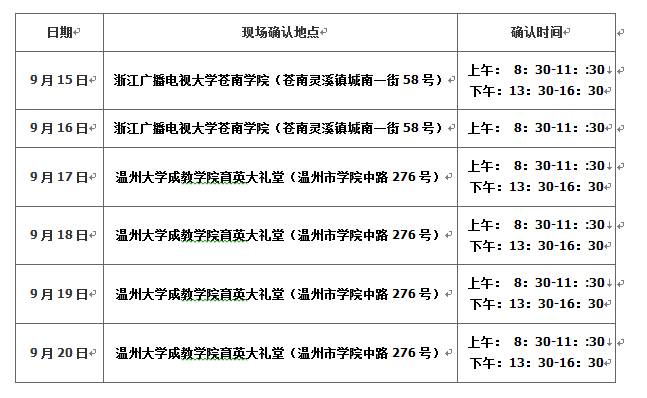 二、溫州考區(qū)現(xiàn)場確認地址及時間: