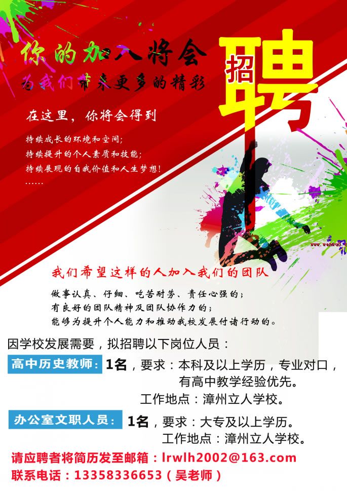 2015年福建省漳州立人學(xué)校教師招聘公告