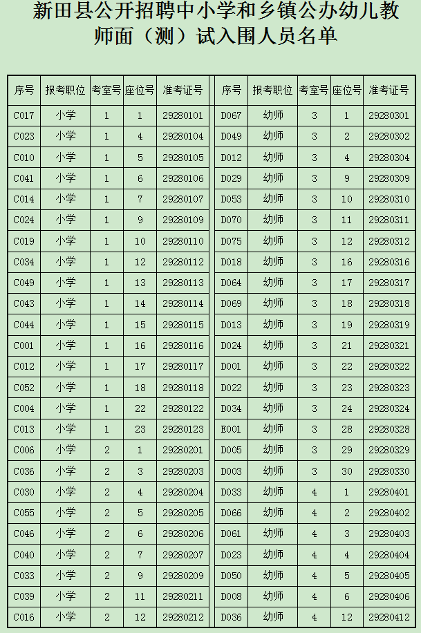 附件:新田縣公開招聘中小學和鄉(xiāng)鎮(zhèn)公辦幼兒教師面(測)試入圍人員名單.docx