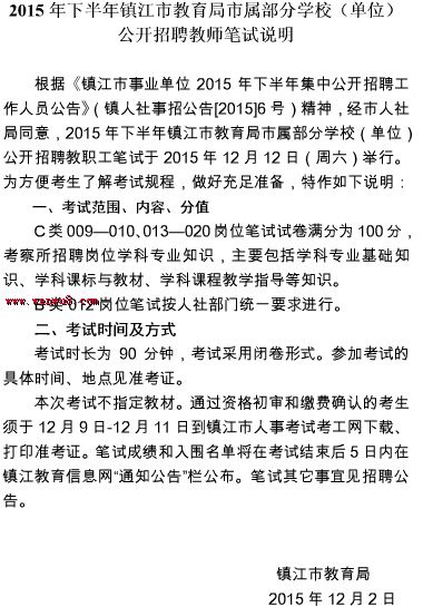 2015年下半年江蘇省鎮(zhèn)江市教育局市屬部分學(xué)校(單位)教師招聘筆試說明