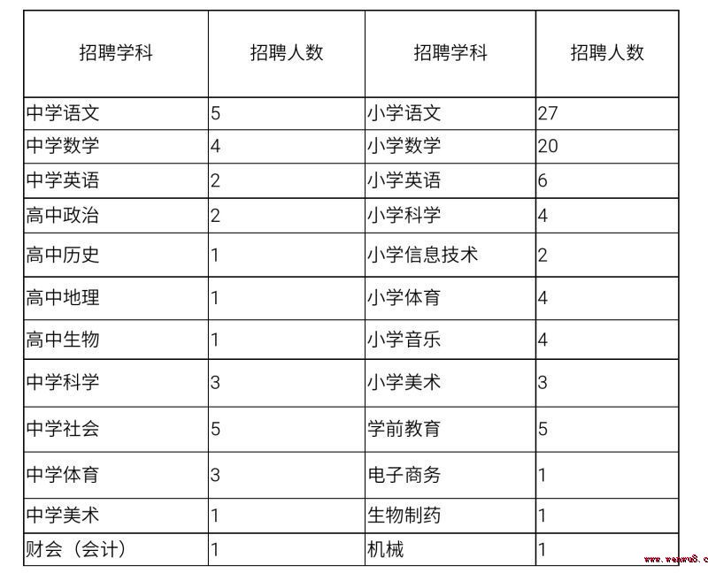計劃招聘新教師107名。各學(xué)科招聘人數(shù)見下表: