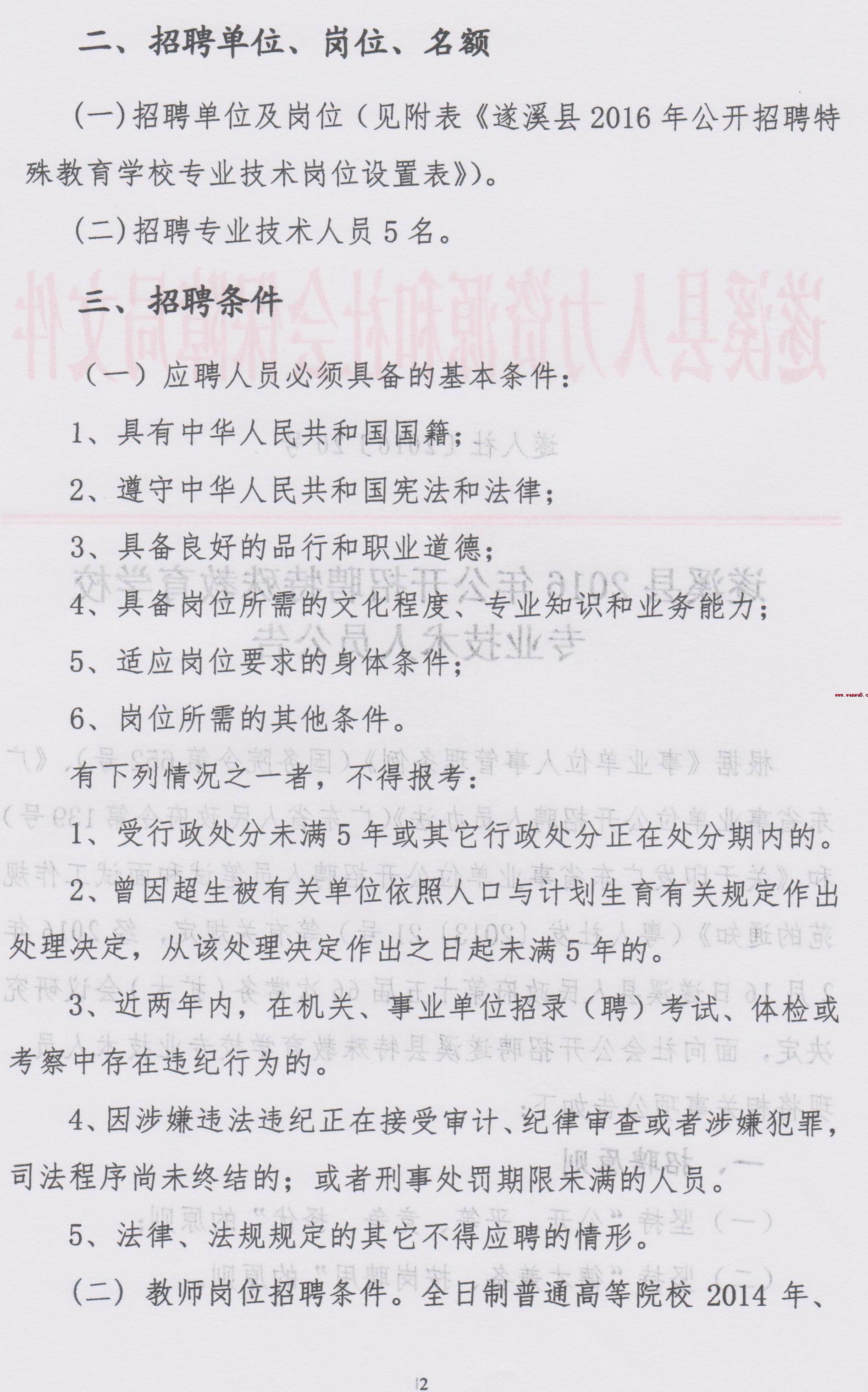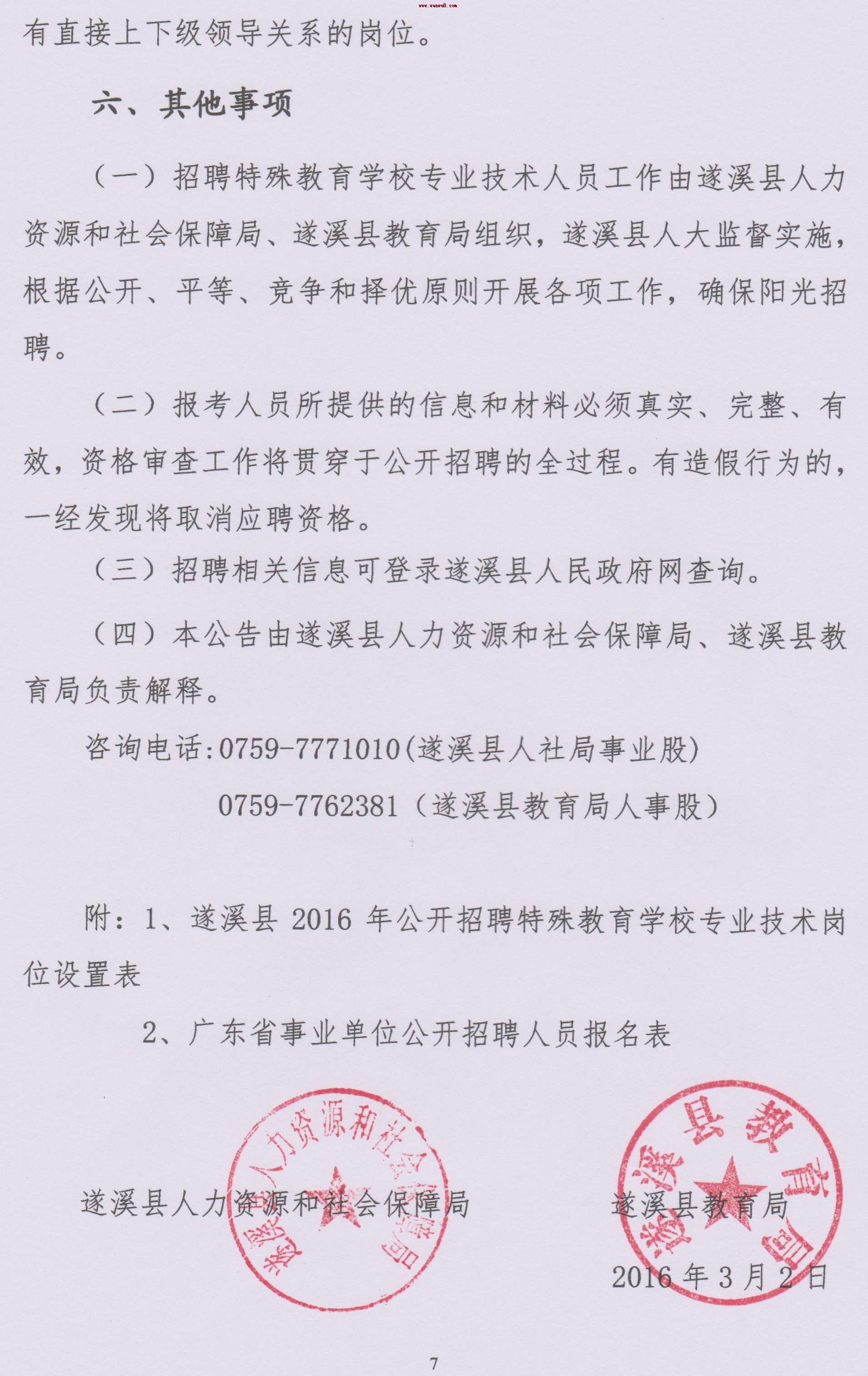 附件1:遂溪縣2016年公開招聘特殊教育學(xué)校專業(yè)技術(shù)崗位設(shè)置