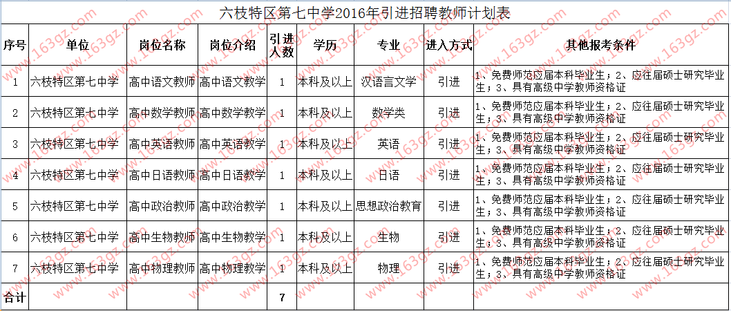 附:《六枝特區(qū)第七中學(xué)2016年引進(jìn)招聘教師計(jì)劃表》