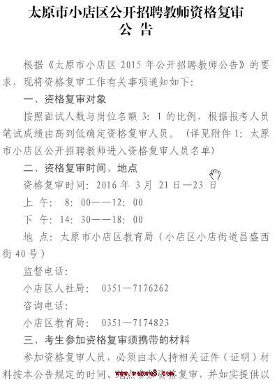 附件1:太原市小店區(qū)公開招聘教師進(jìn)入資格復(fù)審人員名單