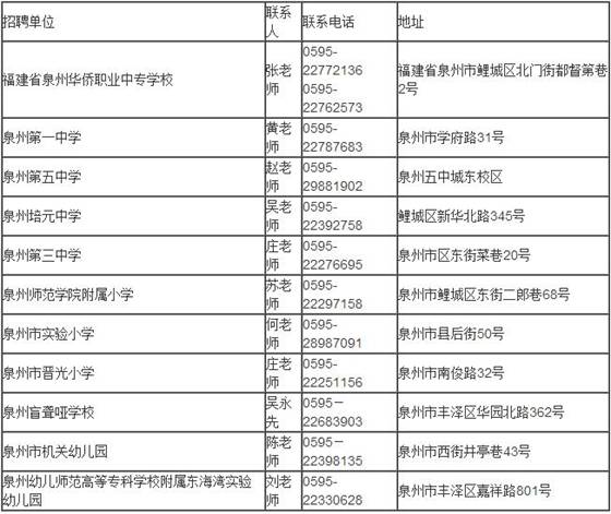 。ㄋ模┍敬握衅傅拿嬖、體檢、資格復審以及聘用公示等信息將在泉州市教育局網站發(fā)布,報考人員應隨時關注、查詢。因未關注網站相關消息而影響招聘的,后果由考生自負。