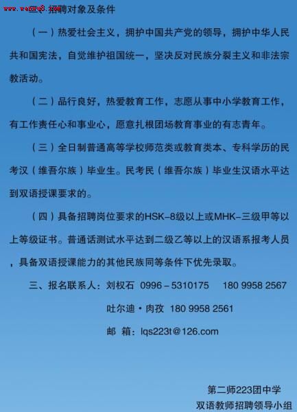 2016年新疆生產(chǎn)建設(shè)兵團(tuán)第二師二二三團(tuán)中學(xué)教師招聘簡(jiǎn)章