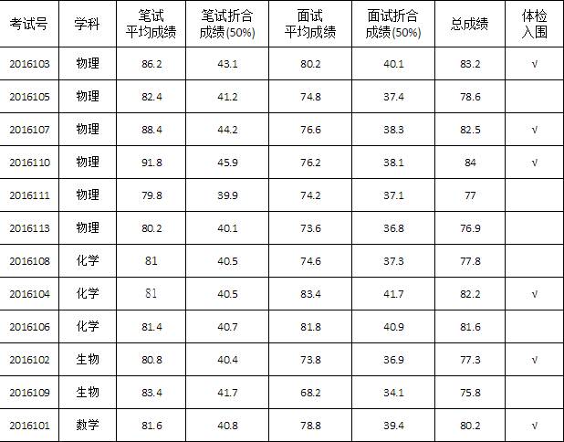 津市一中2016年教師招聘總成績(jī)及體檢入圍名單公示