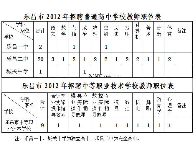 二、招聘崗位職數(shù)(詳見附表) 普通高中學(xué)校教師23名,中等職業(yè)技術(shù)學(xué)校教師9名。