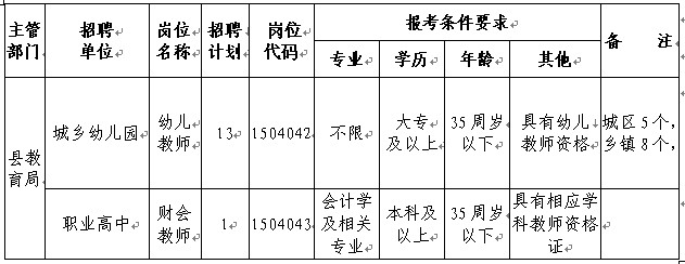 招聘對(duì)象:幼兒教師為國(guó)家承認(rèn)學(xué)歷的應(yīng)、歷屆大專及以上畢業(yè)生,職高教師為國(guó)家承認(rèn)學(xué)歷的應(yīng)歷屆本科及以上畢業(yè)生,以及符合招聘崗位條件的人員,且必須符合以下條件:
