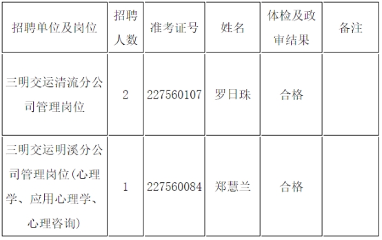 附件:2022年三明市交運(yùn)集團(tuán)有限公司公開(kāi)招聘管人員擬聘用人員名單(二)