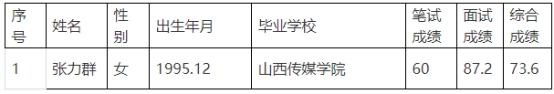 2023年4月9日,我公司公開招聘工作人員,經(jīng)過筆試、面試,現(xiàn)將招聘結(jié)果予以公示: