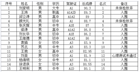 連云港市贛榆客運(yùn)有限公司公開招聘公交車駕駛員擬錄用名單