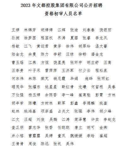 一、通過資格初審人員名單詳見《2023年文都控股集團(tuán)有限公司公開招聘資格初審人員名單》(附件)