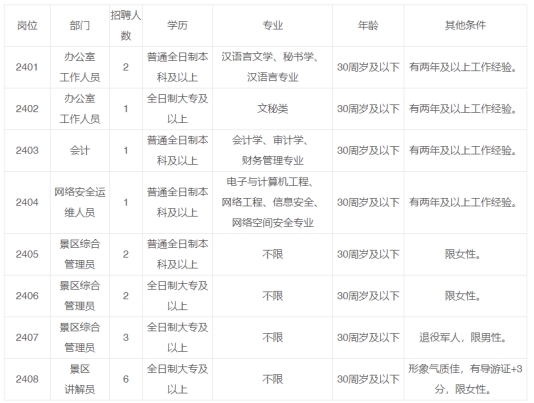 因工作需要,安徽省皇藏峪旅游發(fā)展有限公司決定面向社會(huì)公開(kāi)招聘工作人員18名,F(xiàn)將有關(guān)事項(xiàng)公告如下: