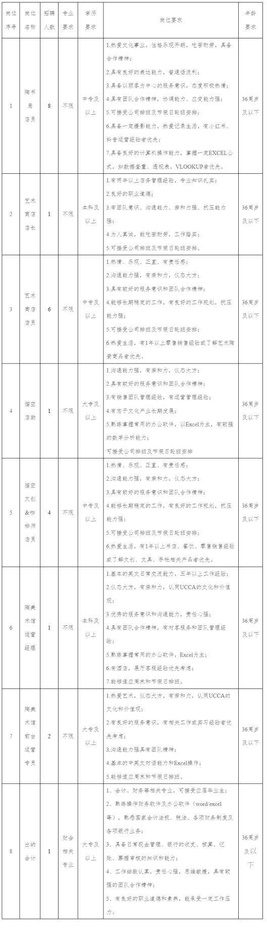 為滿(mǎn)足陶二廠文化街區(qū)用人需求,現(xiàn)面向社會(huì)公開(kāi)招聘,有關(guān)事項(xiàng)如下: