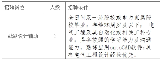 因宜興市宜能實(shí)業(yè)有限公司工作需要,面向社會(huì)公開招聘線路設(shè)計(jì)輔助(勞務(wù)外包)崗位人員2名。公告如下: