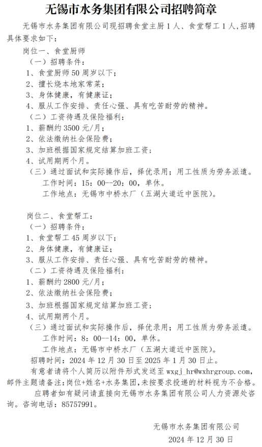 2024年無錫市水務(wù)集團(tuán)有限公司招聘簡(jiǎn)章