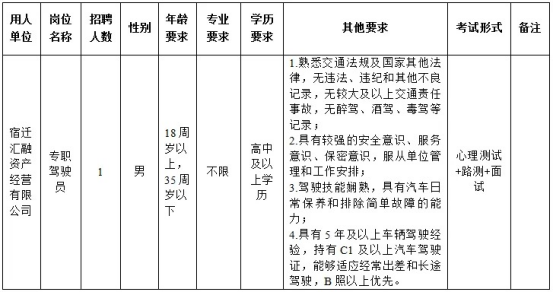 現(xiàn)因公司發(fā)展需要,面向社會公開招聘1名勞務(wù)派遣專職駕駛員,特制定簡章如下: