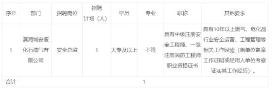 濱海城安液化石油氣有限公司2025年公開選聘工作崗位表