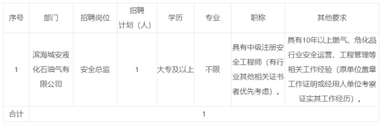 濱海城安液化石油氣有限公司2025年公開選聘工作崗位表