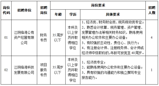 因業(yè)務(wù)需要,江陰臨港經(jīng)濟(jì)開發(fā)區(qū)國資公司決定面向社會公開招聘工作人員5名,現(xiàn)將有關(guān)事項(xiàng)公布如下: