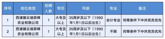 5、具有崗位要求的其他條件(詳見下方《2025年西渚鎮(zhèn)公開招聘云湖茶禪農(nóng)業(yè)有限公司工作人員崗位簡介表》)。