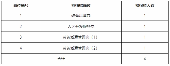 本次計劃招引人才4人。具體崗位及招聘人數(shù)如下: