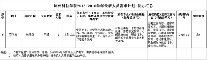 因事業(yè)拓展需要,我校現擬招聘商學院輔導員一名。