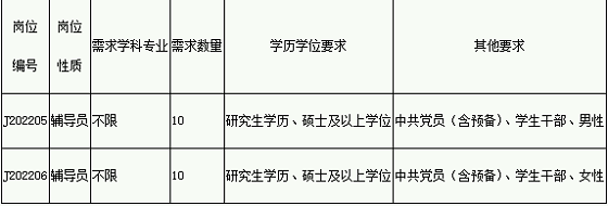 (六)報(bào)考者須為中共黨員或中共預(yù)備黨員;且本科或研究生階段擔(dān)任一學(xué)年及以上主要學(xué)生干部(指擔(dān)任校、院學(xué)生會(huì)或研究生會(huì)主席、副主席,校、院團(tuán)委副書記或團(tuán)總支書記,校、院團(tuán)委或?qū)W生會(huì)或研究生會(huì)副部長(zhǎng)及以上,校、院學(xué)生社團(tuán)聯(lián)合會(huì)主席、副主席,校院學(xué)生自律委員會(huì)主任、副主任,校、院大學(xué)生藝術(shù)團(tuán)團(tuán)長(zhǎng)、副團(tuán)長(zhǎng),校、院青年自愿者協(xié)會(huì)(服務(wù)隊(duì))會(huì)長(zhǎng)、副會(huì)長(zhǎng)(隊(duì)長(zhǎng)、副隊(duì)長(zhǎng)),校、院紅十字會(huì)會(huì)長(zhǎng)、副會(huì)長(zhǎng),輔導(dǎo)員助理,正副班長(zhǎng)、正副團(tuán)支部書記,正副學(xué)生黨支部書記,校易班學(xué)生工作站站長(zhǎng)、副站長(zhǎng)、部長(zhǎng),校電臺(tái)臺(tái)長(zhǎng),校報(bào)記者團(tuán)團(tuán)長(zhǎng),校級(jí)團(tuán)學(xué)組織主要刊物主編及以上職務(wù),研究生期間擔(dān)任班委)。取得境外學(xué)歷學(xué)位報(bào)考者不作學(xué)生干部經(jīng)歷要求。報(bào)考者入職后須入住學(xué)生公寓社區(qū)的值班宿舍。