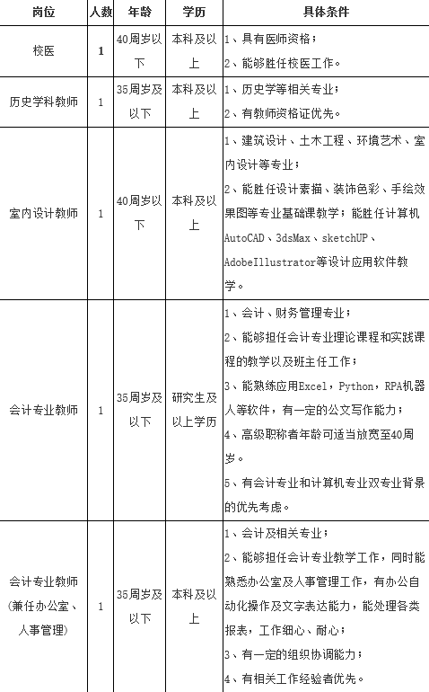 3、身體健康,具有較強科研能力、教學經(jīng)驗豐富的學科帶頭人,年齡可放寬至45周歲(年齡計算截止時間2022年4月7日)。