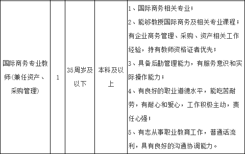 上海市商業(yè)學校創(chuàng)建于1960年,是上海市經(jīng)濟和信息化委員會下屬的國家級重點中專,國家中等職業(yè)教育改革發(fā)展建設示范校,上海市文明單位,上海市安全文明校園,上海市職業(yè)教育先進集體。主要承擔中等專業(yè)技術人才培養(yǎng)及培訓等工作。因教育教學業(yè)務發(fā)展需要,根據(jù)《上海市事業(yè)單位公開招聘人員辦法》(滬人社規(guī)〔2019〕15號)規(guī)定,現(xiàn)面向社會公開招聘教師6名。