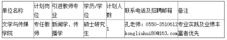 1.碩士研究生招聘工作按人事考試規(guī)則和保密、回避等規(guī)定組織實(shí)施,學(xué)校紀(jì)檢部門全程參與監(jiān)督,歡迎社會和廣大教職工監(jiān)督,監(jiān)督電話:0550-3512355。