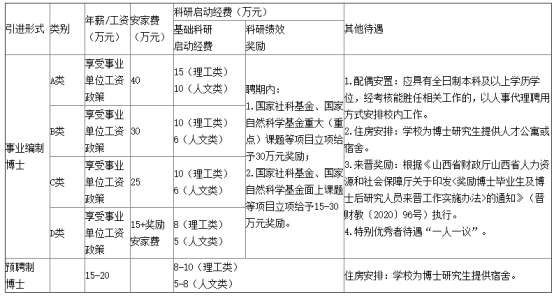 1.事業(yè)編制博士:采取全職引進方式,納入事業(yè)編制管理,年齡一般不超過40周歲,特別優(yōu)秀者可放寬至45周歲。2.預(yù)聘制博士:采取全職引進方式,年齡一般不超過45周歲,實行靈活聘期,聘期1-2年,具體由雙方協(xié)商確定。聘期內(nèi)學校為預(yù)聘制博士繳納各項社會保險。