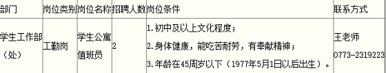 人事處龔老師,0773-2319230;李老師,0773-2208378。